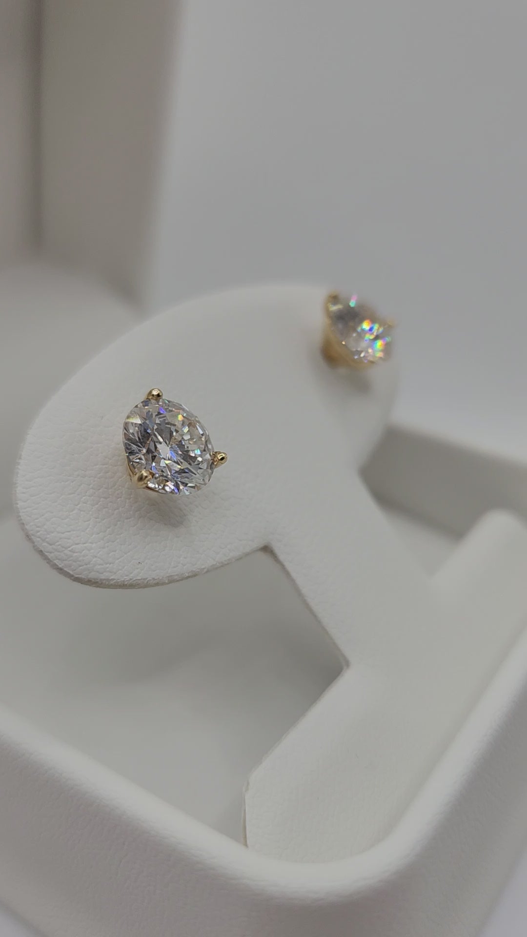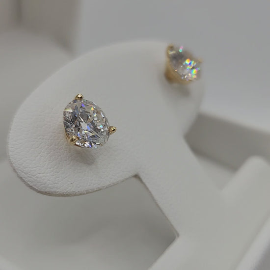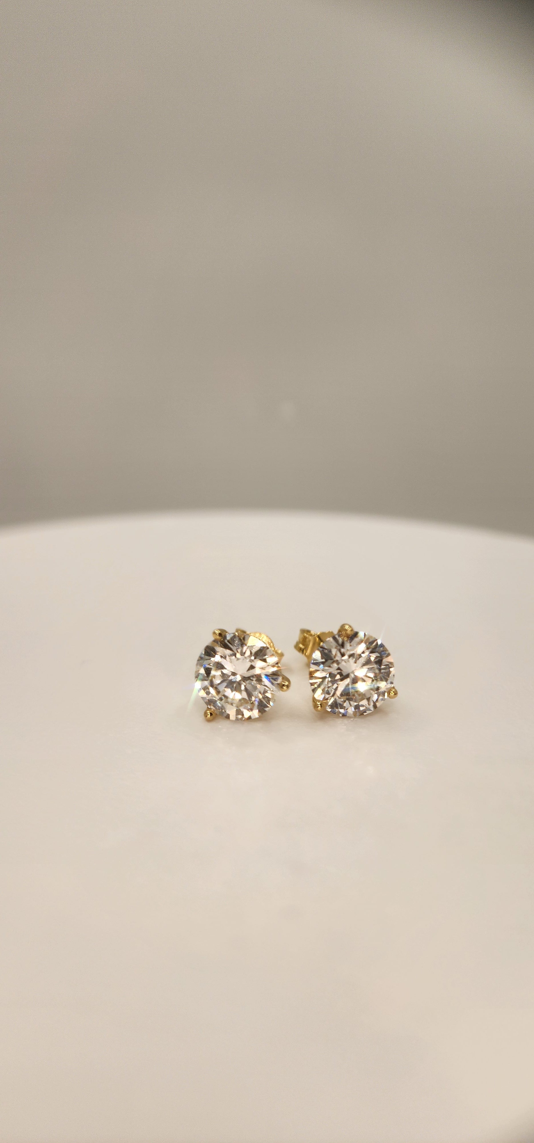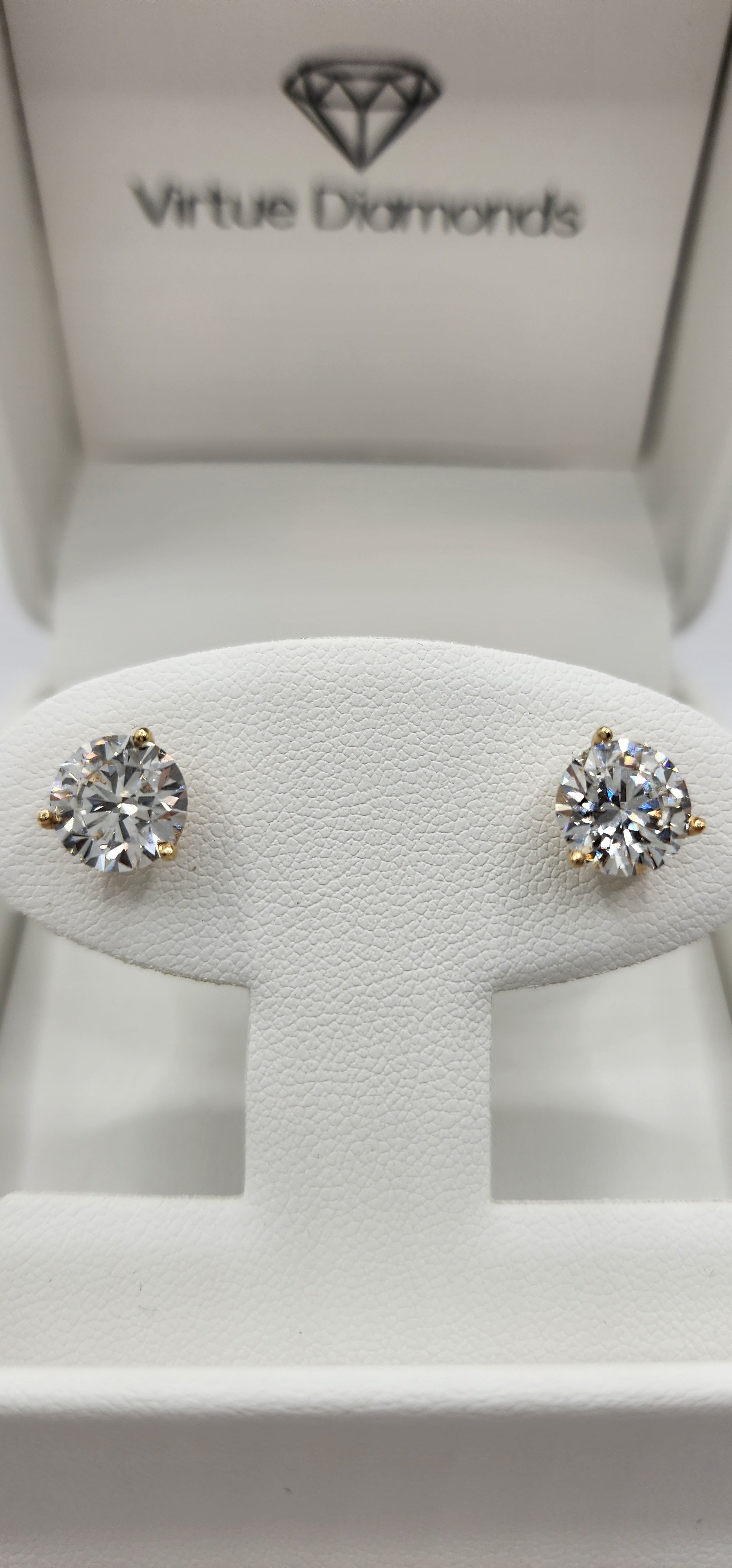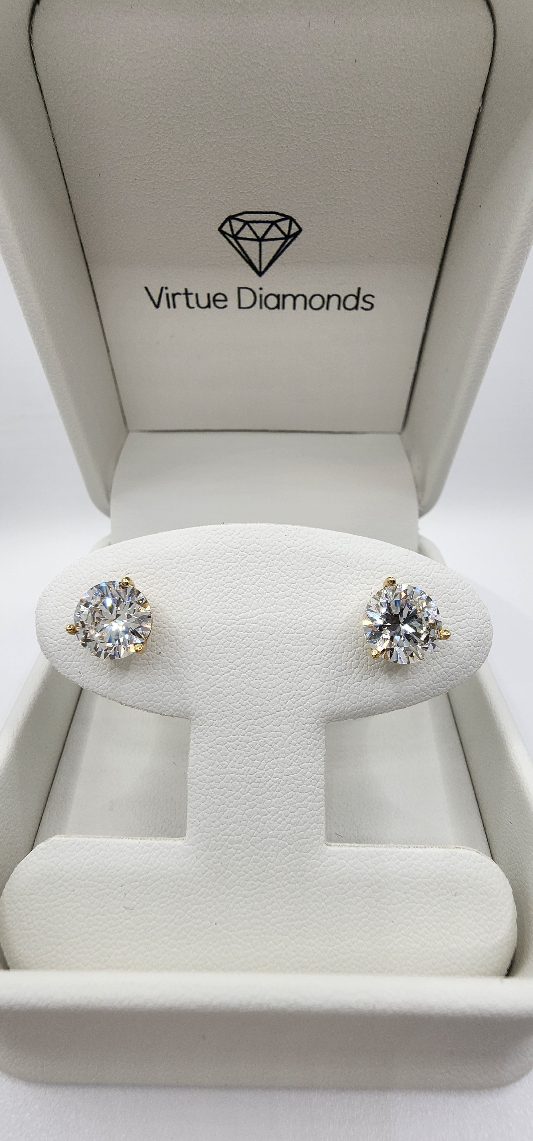 4 Carat Total Weight Diamond Studs, Yellow Gold, 3-Prong Martini Setting