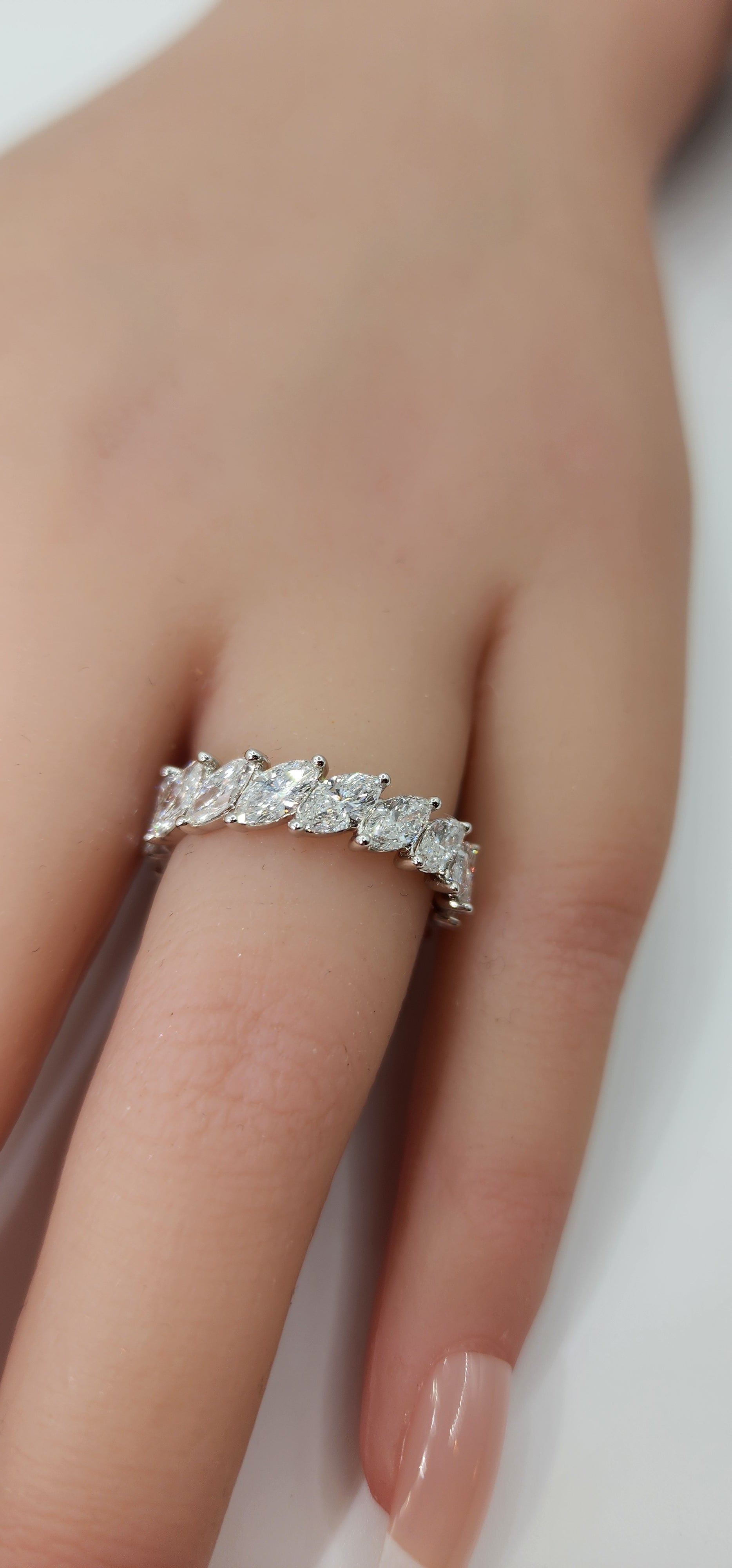 3 Carat Total Weight Marquise Lab Grown Diamond Eternity Band, 14K White Gold, Size 7