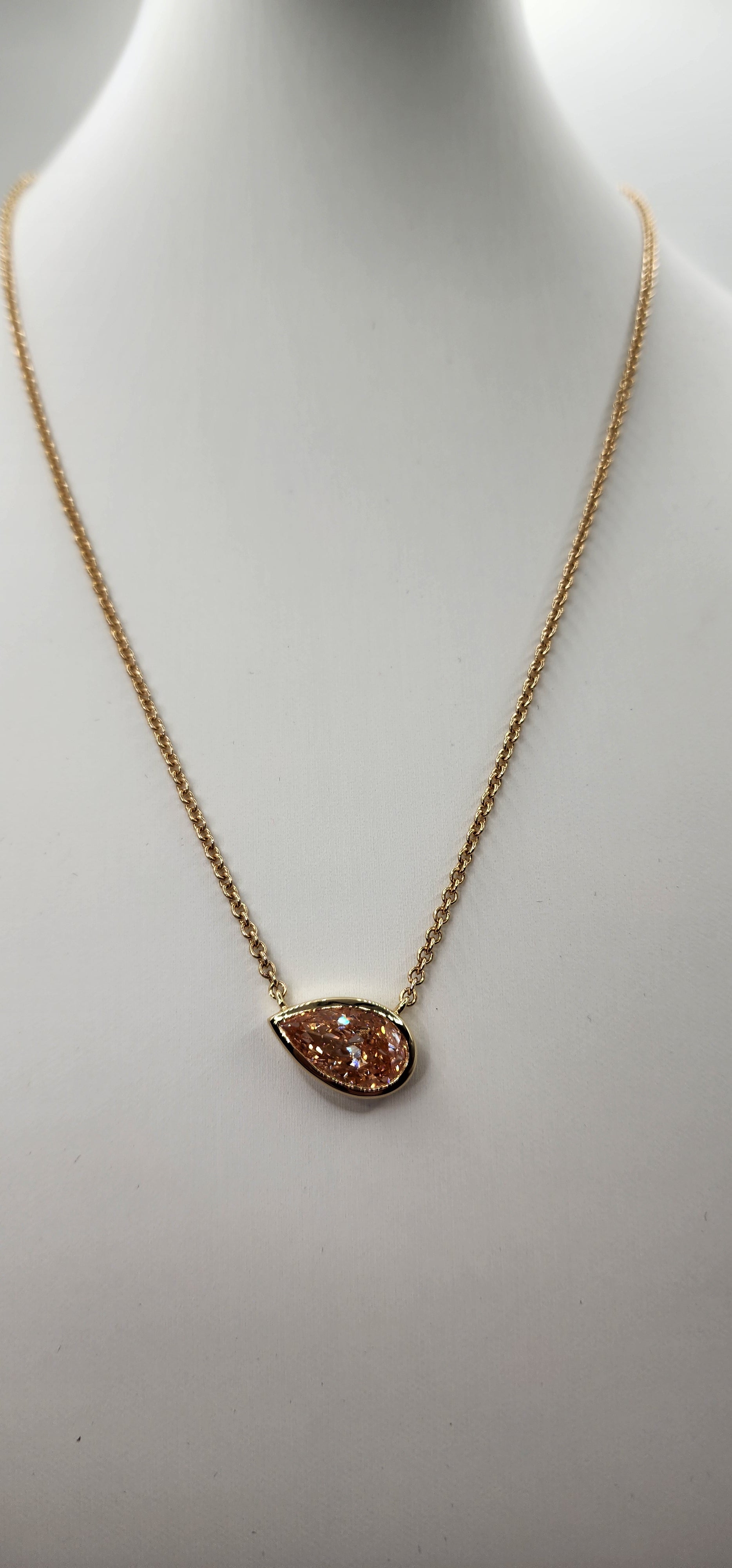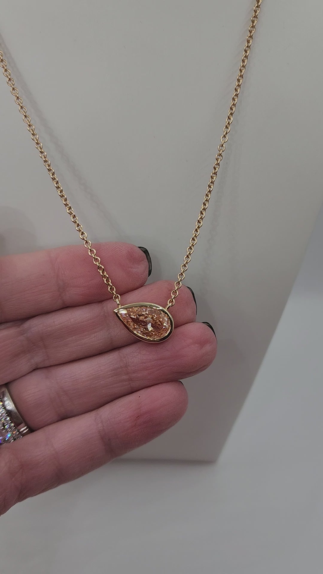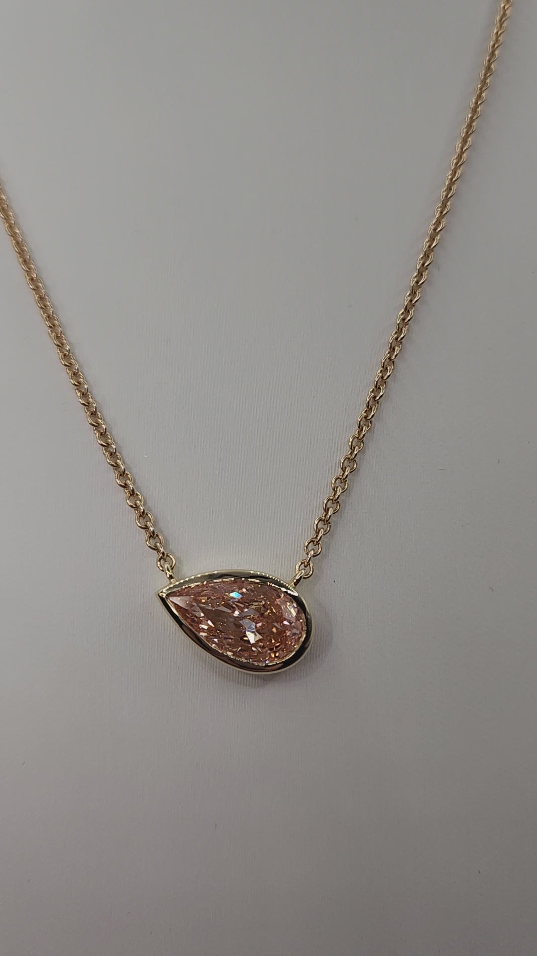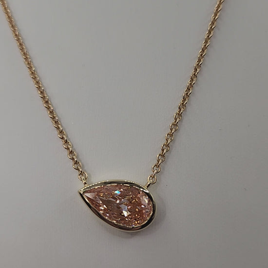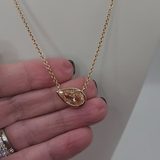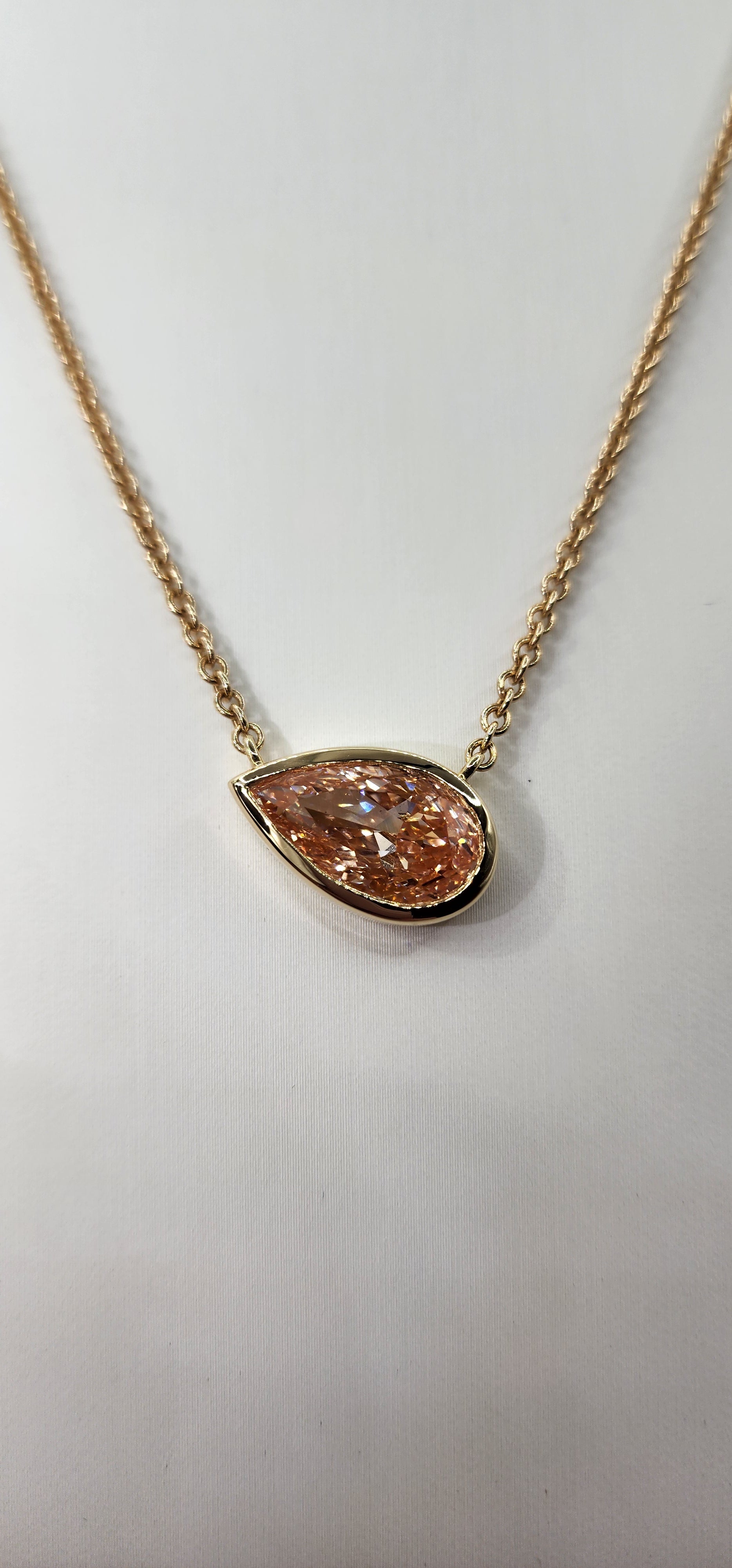 4 carat Fancy Intense Pink Bezel Set 16-18" Necklace, 14k Yellow Gold IGI Cerified Lab Diamond