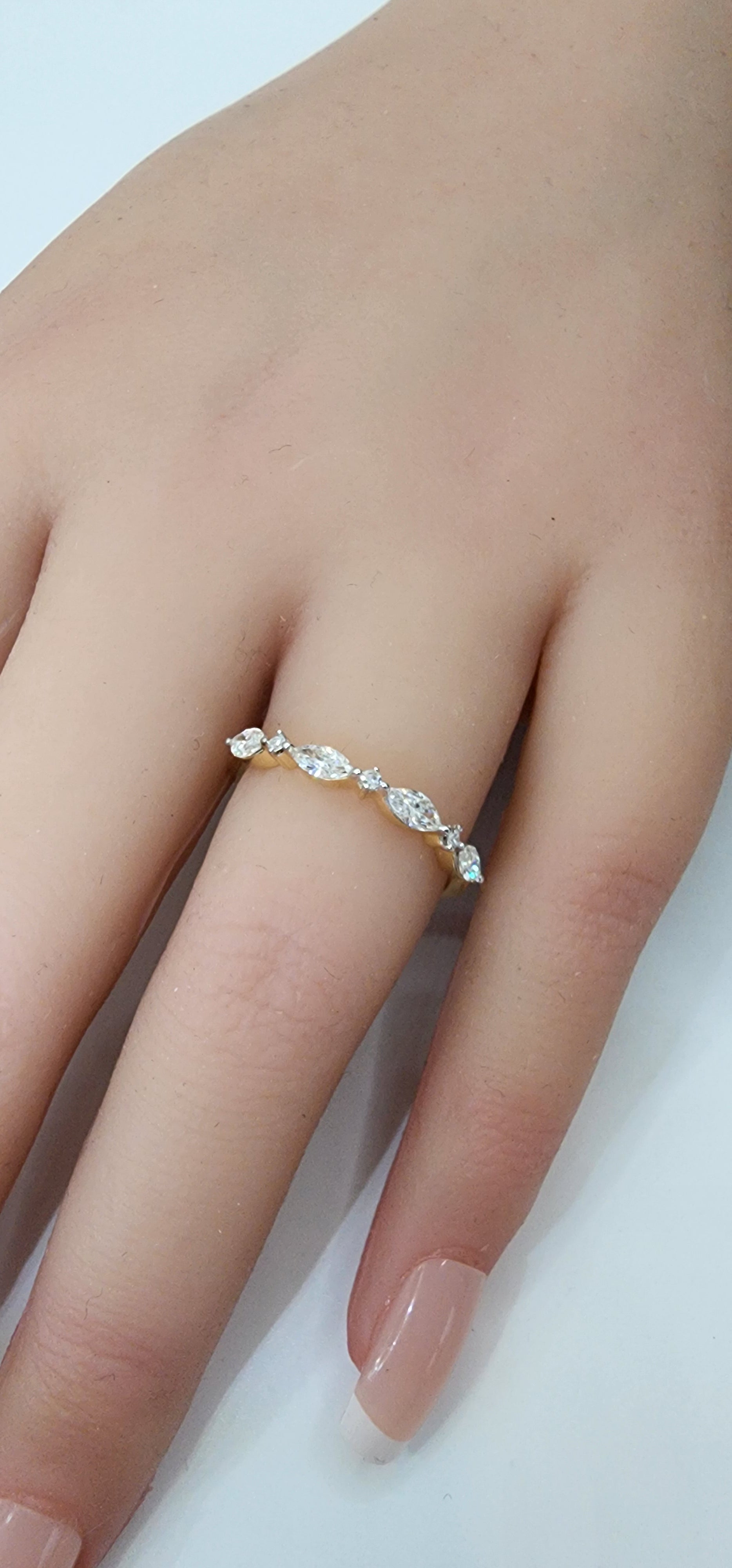 .40 Carat Marquise & Round Lab Diamond Anniversary Band, 14k Yellow Gold