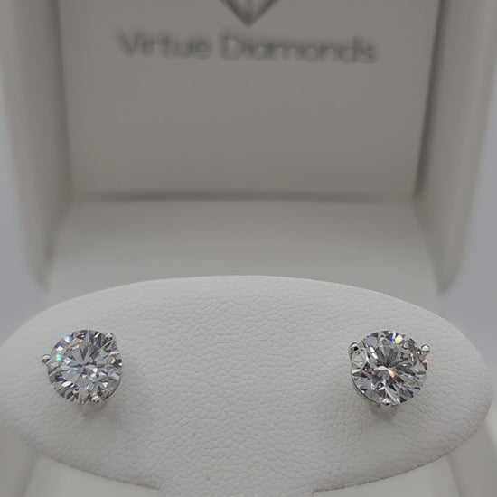 4 Carat Total Weight Diamond Studs, 14k White Gold, 3-Prong Martini Setting