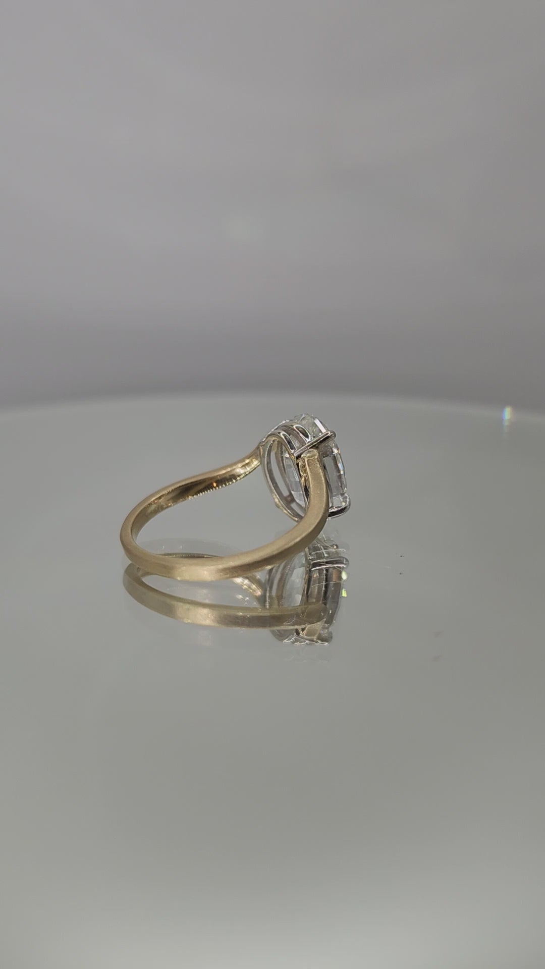 The diamond is set on a sculptural 14k yellow gold contour band, finished in a soft brushed texture that adds depth and modern character. The matte gold contrasts beautifully with the diamond’s crisp, geometric facets, creating a look that feels intentional, elevated, and effortlessly cool.