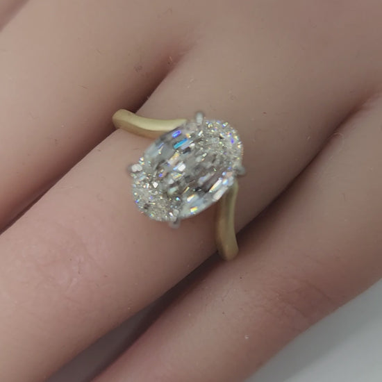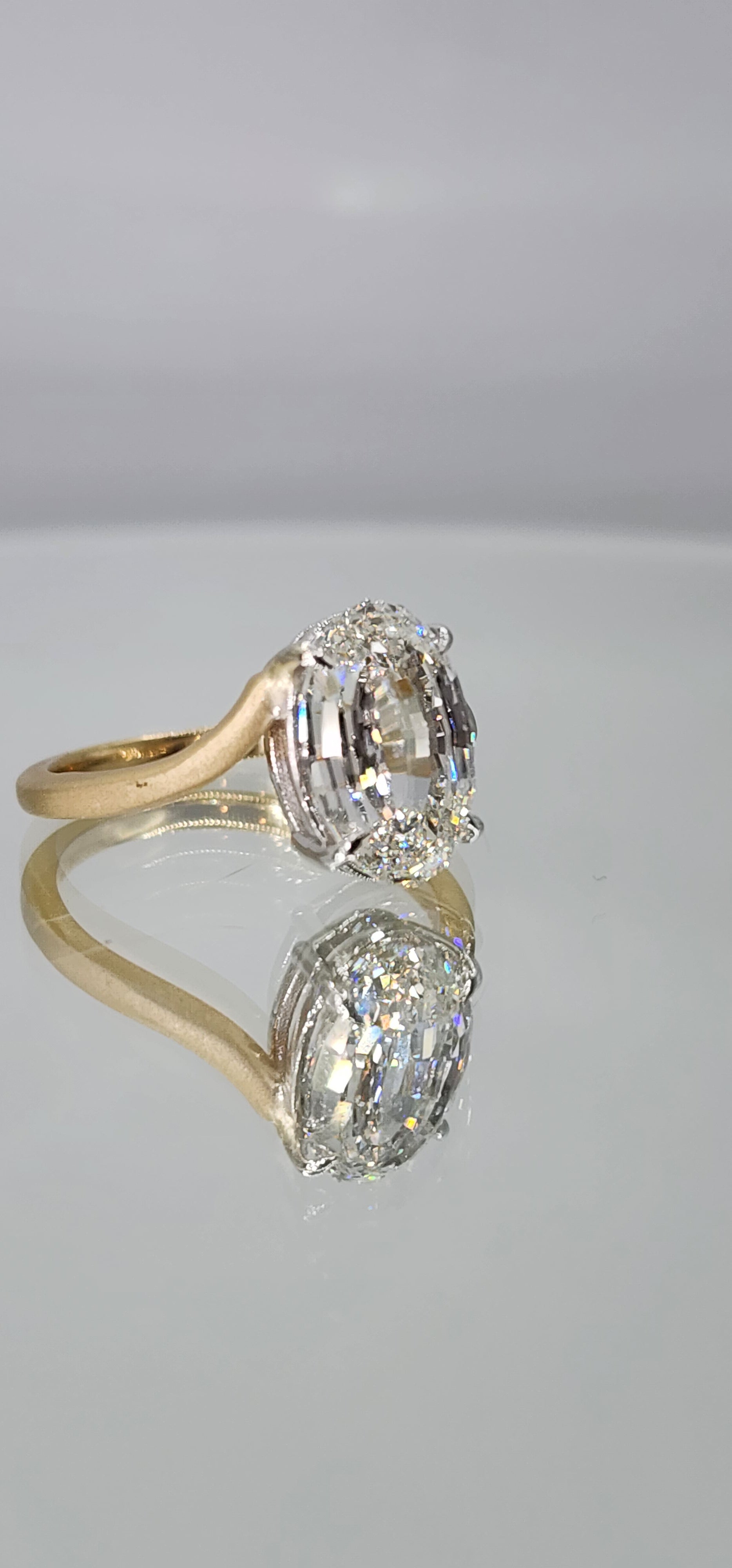 Meet The Kris, a custom-designed statement that celebrates clean lines and quiet confidence. At the center is a striking 4.14-carat step-cut oval lab-grown diamond, prized for its elongated silhouette and hall-of-mirrors effect that delivers a sleek, sophisticated glow rather than overt sparkle.
