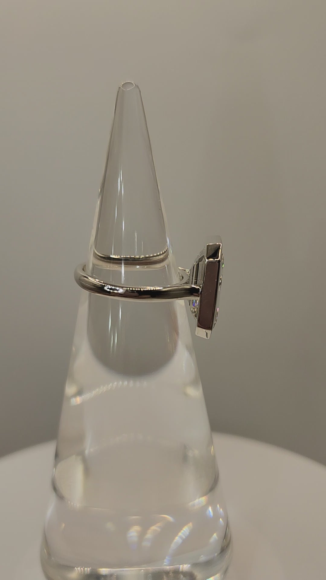 Set in a sleek 14k white gold bezel, The Paula blends modern minimalism with timeless glamour. The emerald cut’s long, open facets create a hall-of-mirrors effect, giving the diamond dramatic flashes of light with every movement. The full-bezel silhouette not only protects the stone but also enhances its architectural, sculptural feel.