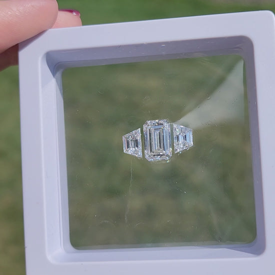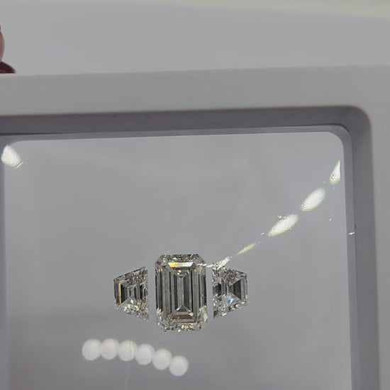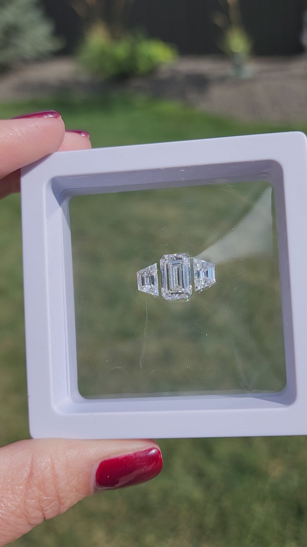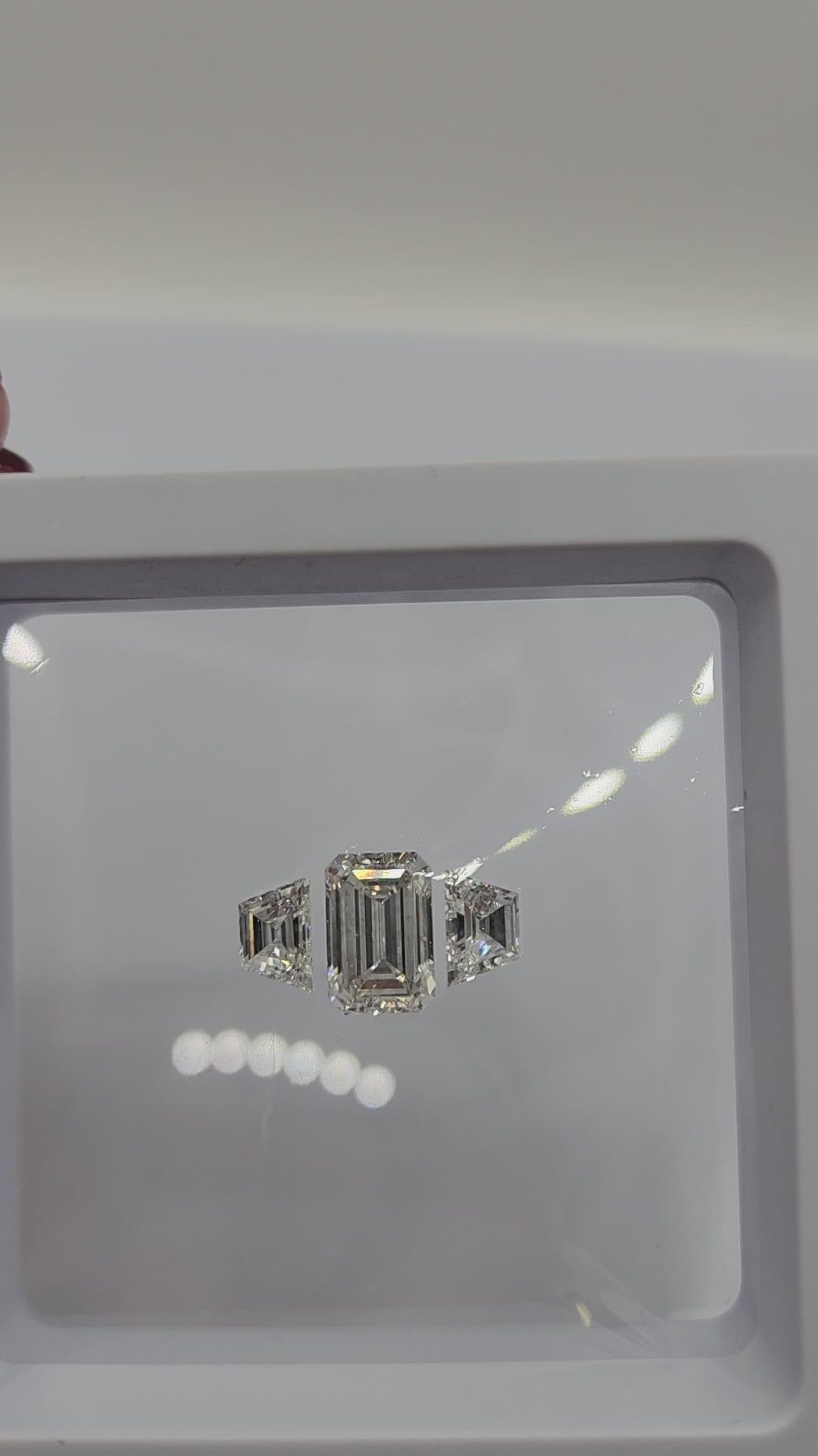 Trilogy Diamond Set (1) 4.04 H/SI1 Emerald Cut Lab Grown Diamond & (2) 1 .03 Carat Trapezoids F/VVS2 & E/VS1 for Trilogy Ring Setting